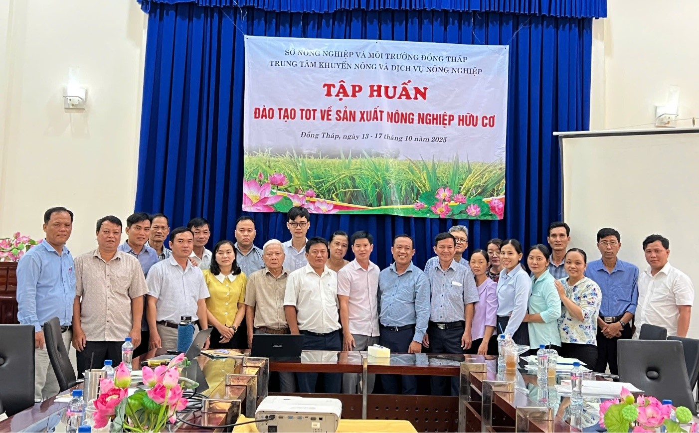 Từ ngày 13 - 17/10/2025, tại Hội trường Nhà khách Phố Sen (số 48, đường Lý Thường Kiệt, phường Cao Lãnh, tỉnh Đồng Tháp). Trung tâm Khuyến nông và Dịch vụ nông nghiệp tỉnh Đồng Tháp tổ chức lớp đào tạo ToT (Training of Trainers) về sản xuất nông nghiệp hữu cơ.