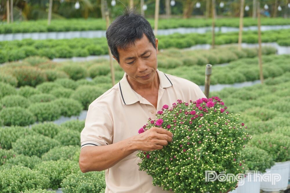 Nông dân Huỳnh Hữu Phước (khóm Tân An, phường Sa Đéc, tỉnh Đồng Tháp) chia sẻ, năm nay, ông mạnh dạn tăng sản lượng lên gấp 3 lần so với năm ngoái, đạt 12.000 giỏ hoa. Trong đó, 9.000 giỏ được trồng riêng để phục vụ Festival, chủ yếu là các loại hoa quen thuộc như cúc mâm xôi, cúc truyền thống và hoa dừa.