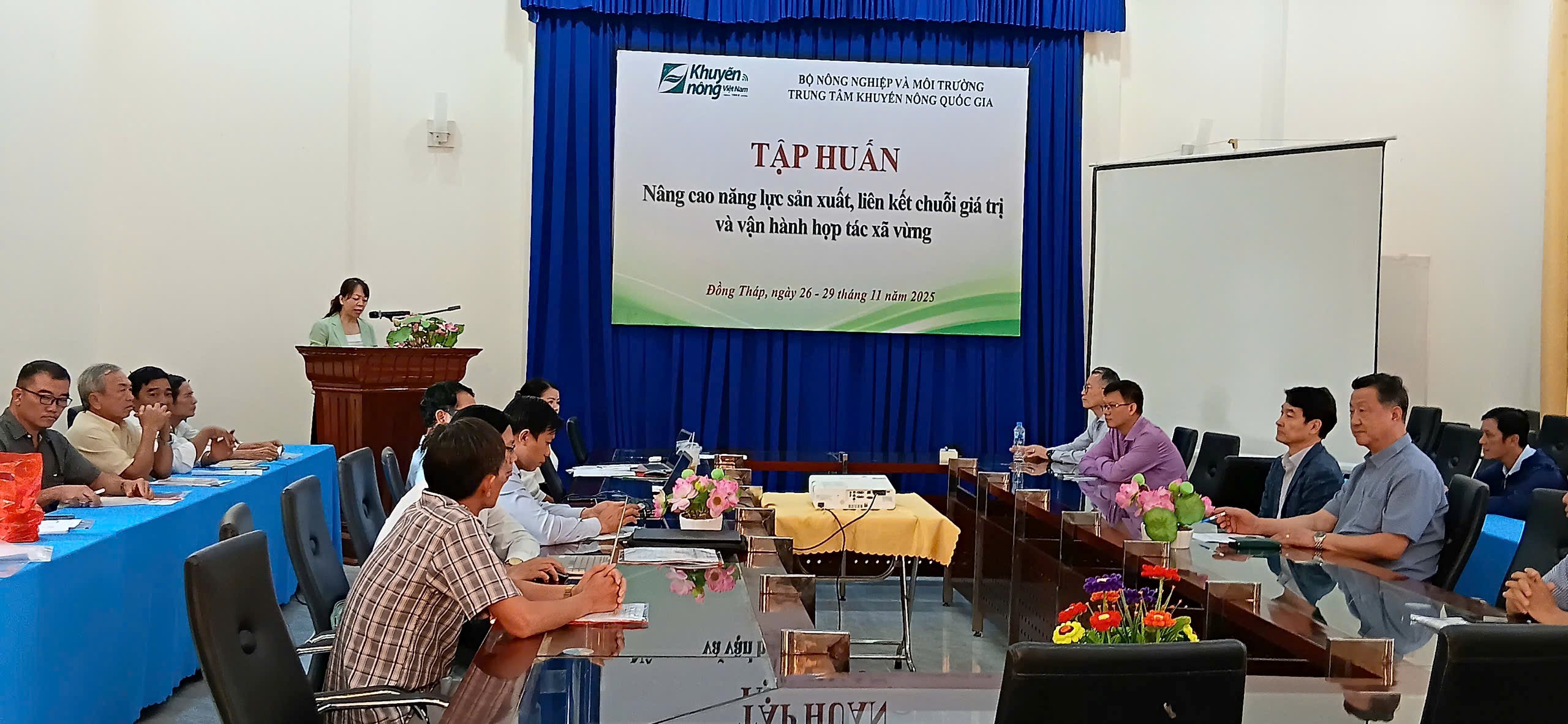 Nhằm nâng cao năng lực cho cán bộ kỹ thuật trong việc tiếp cận tiến bộ kỹ thuật mới về canh tác, sau thu hoạch và tổ chức sản xuất vừng (mè). Sáng ngày 26/11/2025 tại Nhà Khách Phố sen, địa chỉ: Số 48, đường Lý Thường Kiệt, phường Cao Lãnh, tỉnh Đồng Tháp, Trung tâm Khuyến nông Quốc Gia phối hợp Trung tâm Khuyến nông và Dịch vụ nông nghiệp Đồng Tháp (TTKN&DVNN) tổ chức lớp tập huấn Nâng cao năng lực sản xuất, liên kết chuỗi giá trị và vận hành hợp tác xã vừng.